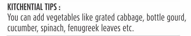 Add vegetables like grated cabbage, bottle gourd, cucumber, spinach, or fenugreek leaves to enhance taste & nutrition.